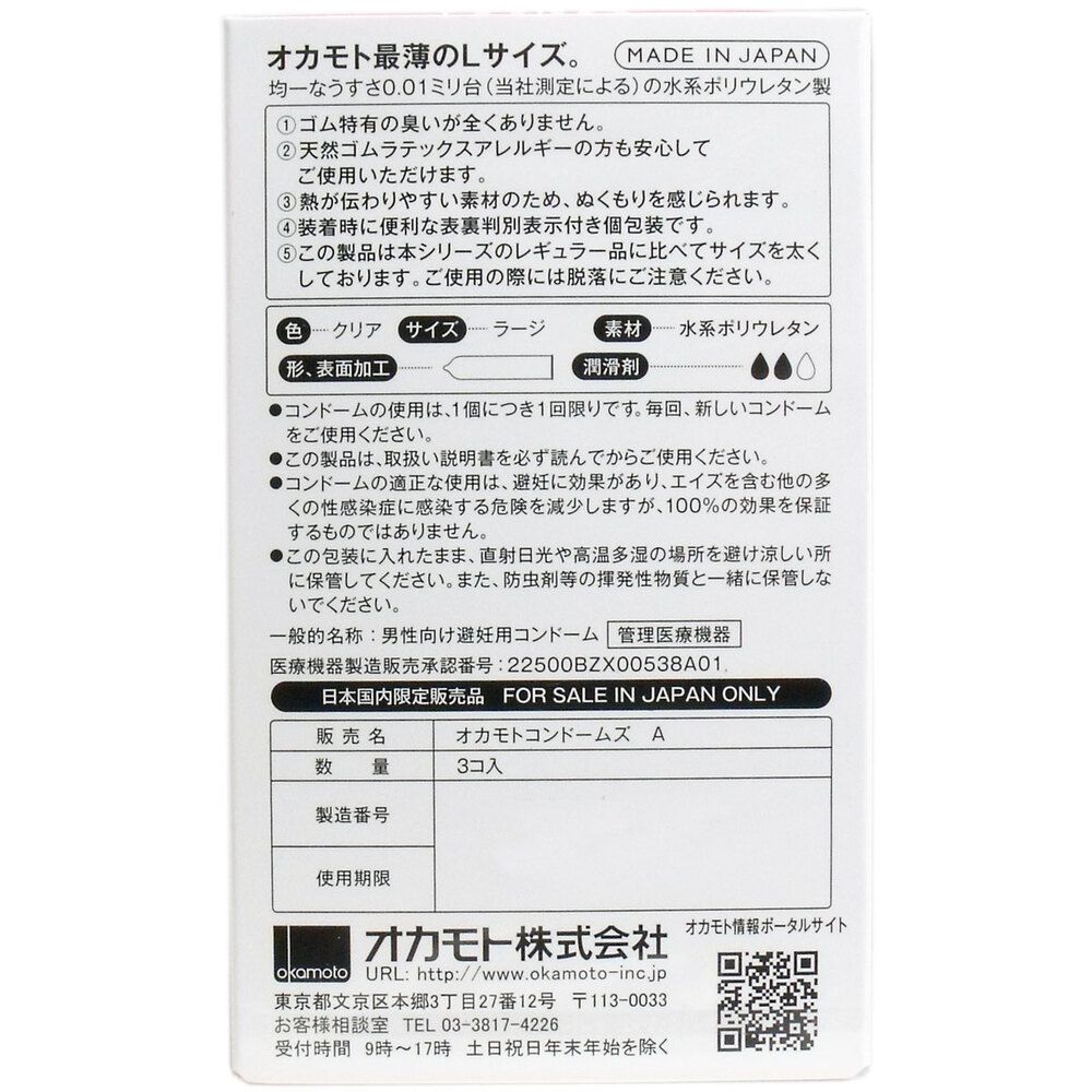 オカモトゼロワン 0.01ミリ コンドーム Lサイズ 入 セット
