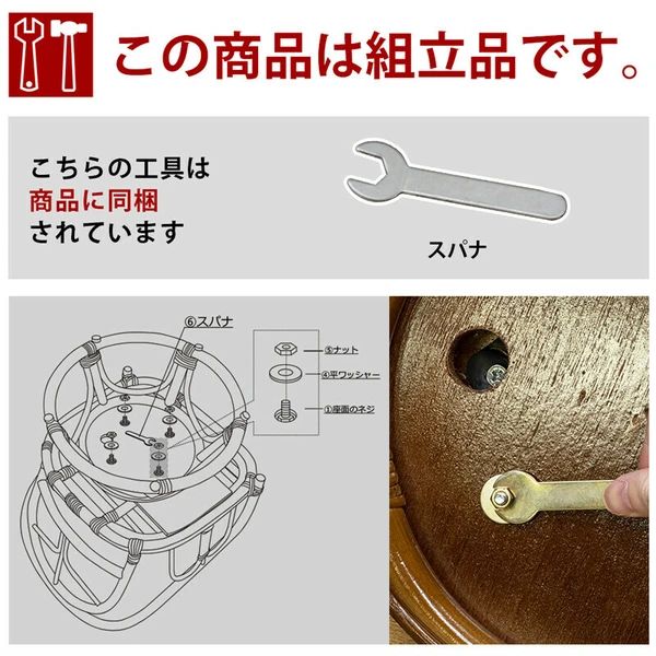 商品に同梱されているスパナで脚部を取り付けていただく組立品です。