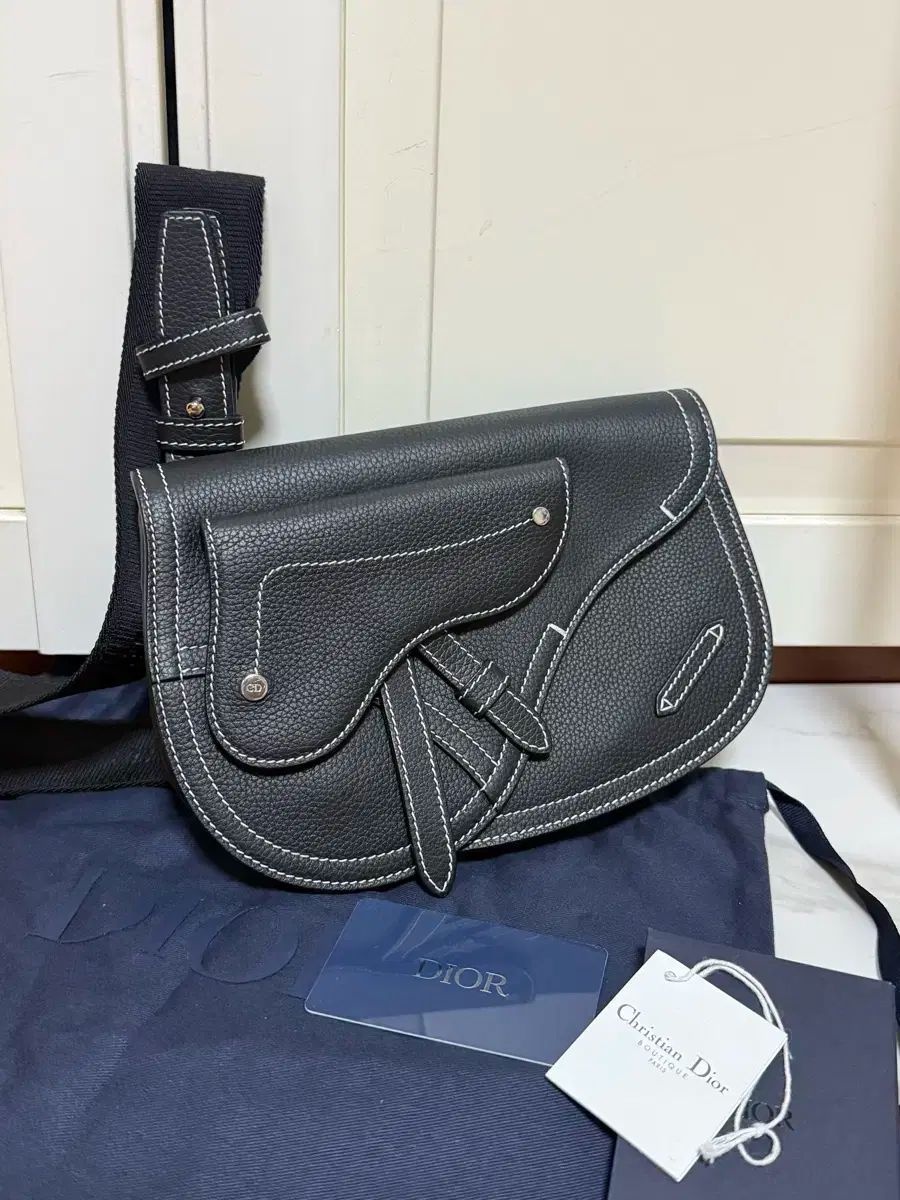 ディオール オブリーク スティッチ サドルバッグです。ブラック カラーに白 スティッチで POINT を与えた デザインが 特徴です。