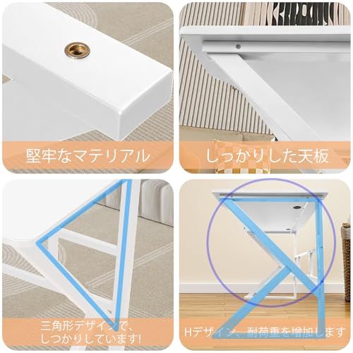 【頑丈で安定】水や傷に強いこだわりの天板素材,強度と耐久性が高いスチールフレームが搭載しており,耐荷重70kg。オフィスワークテーブルの角を丸く設計し、打撲傷のリスクを完全に回避しました。天面には配線用の穴が 2 つあり、配線を通すことができるので、デスクトップをすっきりと整頓できます。