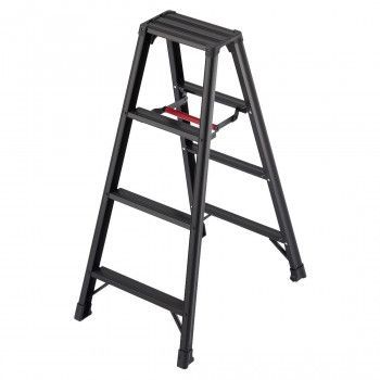 空間に調和するブラックカラー!丈夫さはそのままに軽量化を実現。肩当たりも改善し、負担も軽くなりました。開き止めが進化!新開発「ワンタッチバー」で作業効率が向上。天板がフラットになり、袖や腰袋の引っかかりを防ぐ。移動の際は、バーを掴んだらそのまま開き止めを解除しながら持ち上げられる。踏ざん裏に張りを持たせ、肩当たりをやわらかく。スッキリ天板で、壁やクロスを保護。