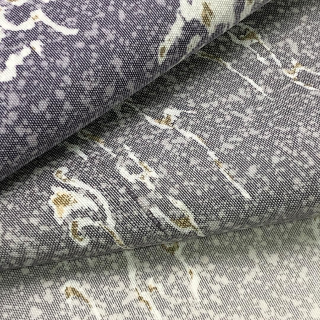 薄紫鼠色ベースのお色味に暈し、叩き染、抽象鹿模様の柄裄がデザインされた雰囲気の良い素敵なお品でございます。