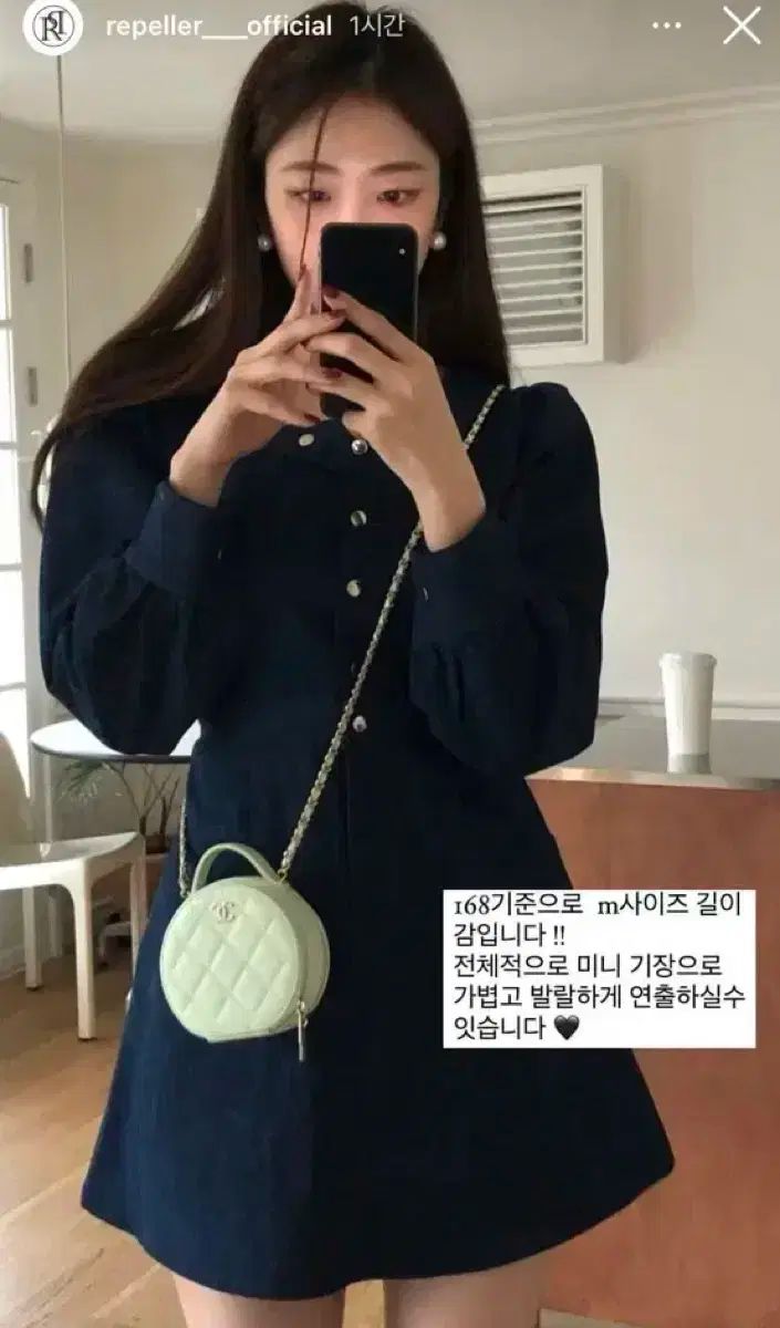 レペル デニム スクエア ミニ ONE PIECE です。 デニム 素材が しっかり素材で 体型 LINE を きれいに 作ってくれて スクエアネック デザインなので ネック LINE が きれいに 見えます。