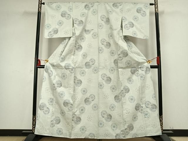 平和屋着物 本場大島紬 白大島 単衣 花丸文 正絹 fy