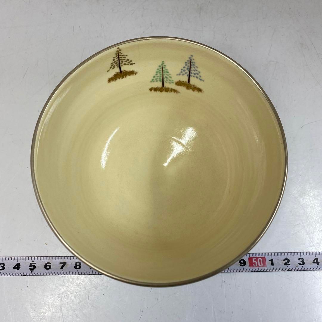 中村能久 銀地樹木図茶碗 共箱 直径12.9㎝ 東Y 5-0424