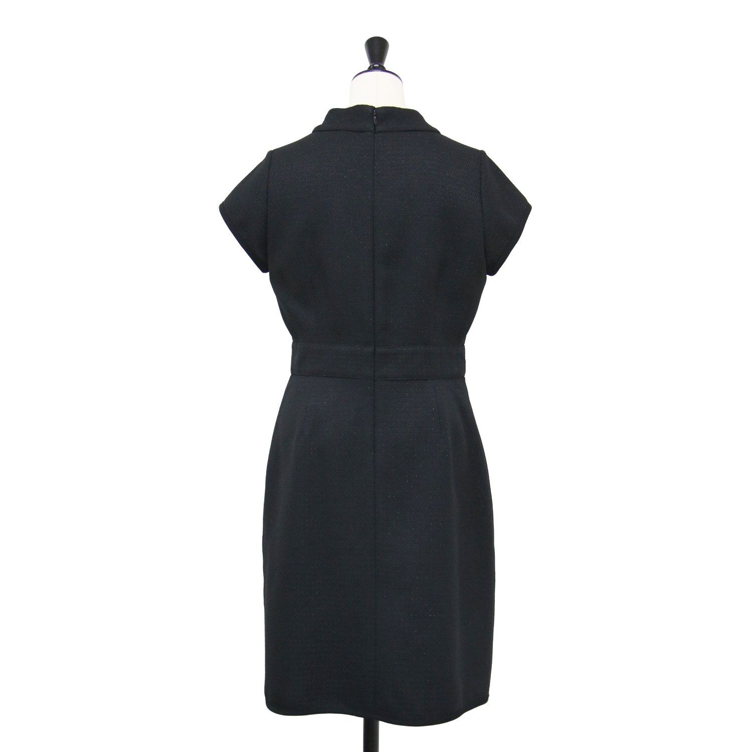 MARY QUANT マリークヮント ワンピース ブラック 黒 サイズ 38 M | ファンシーラメ ブッチャー ドレス スタンドカラー フレンチスリーブ ミニ丈 デイジー刺繍 トップス レディース