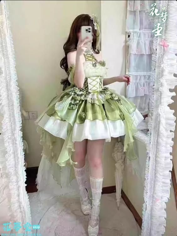 25年 コスプレ プリンセス 花嫁 ロリータワンピース グリーン ドレスロリータセット 仮装 撮影会 舞台 イベント 原野空間-311