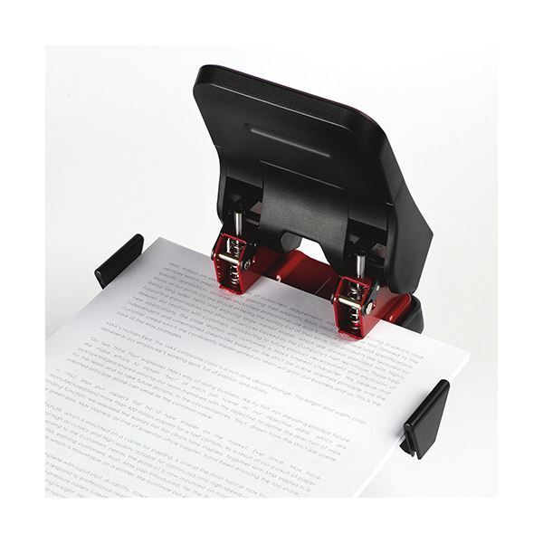 ●用紙のサイズに合わせて簡単にセンター合わせが可能。中型のパンチ、本体色はレッドです。