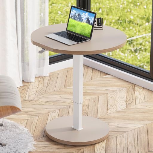 Radloveパソコンデスク昇降式デスクサイドテーブル空圧昇降式デスク丸テーブル直径80 CMPCベッドテーブル介護高さ調節 メモリー機能付き高さ68 109 cm