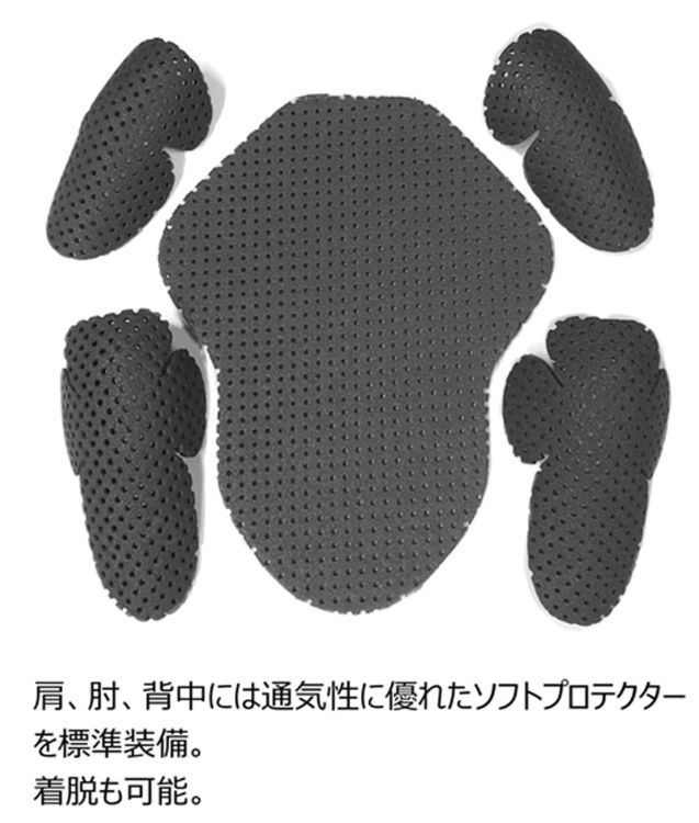 ・肩、肘、背中には着脱式ソフトプロテクターを標準装備。