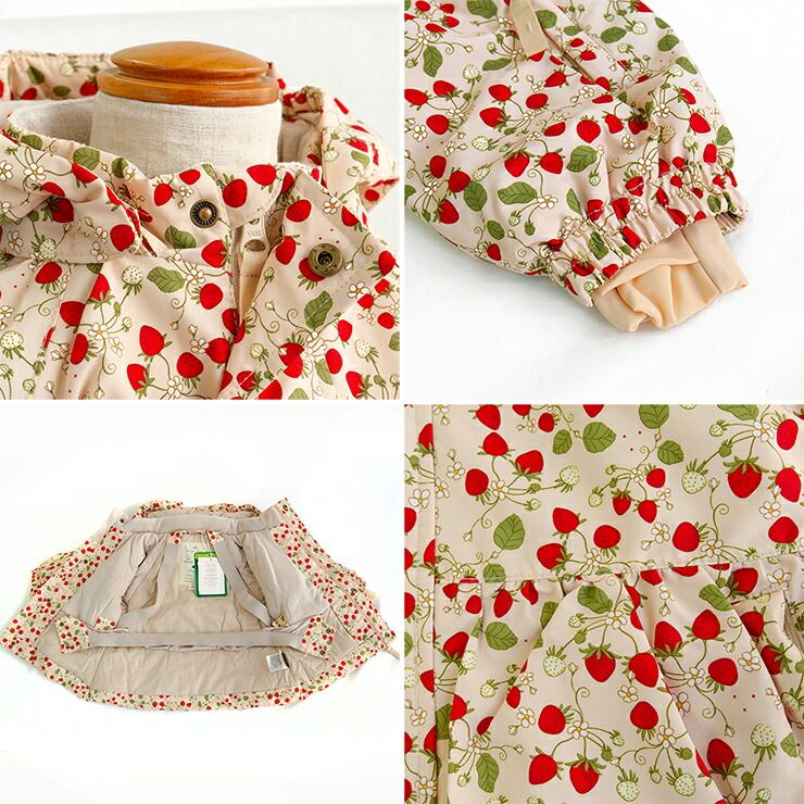 内側にはフリース素材の裏地が付いて暖かく、袖口には伸縮性のある生地がプラス、内側のウエスト部分にはゴムベルトが付き、お子様を寒さからしっかりと守ってくれます。