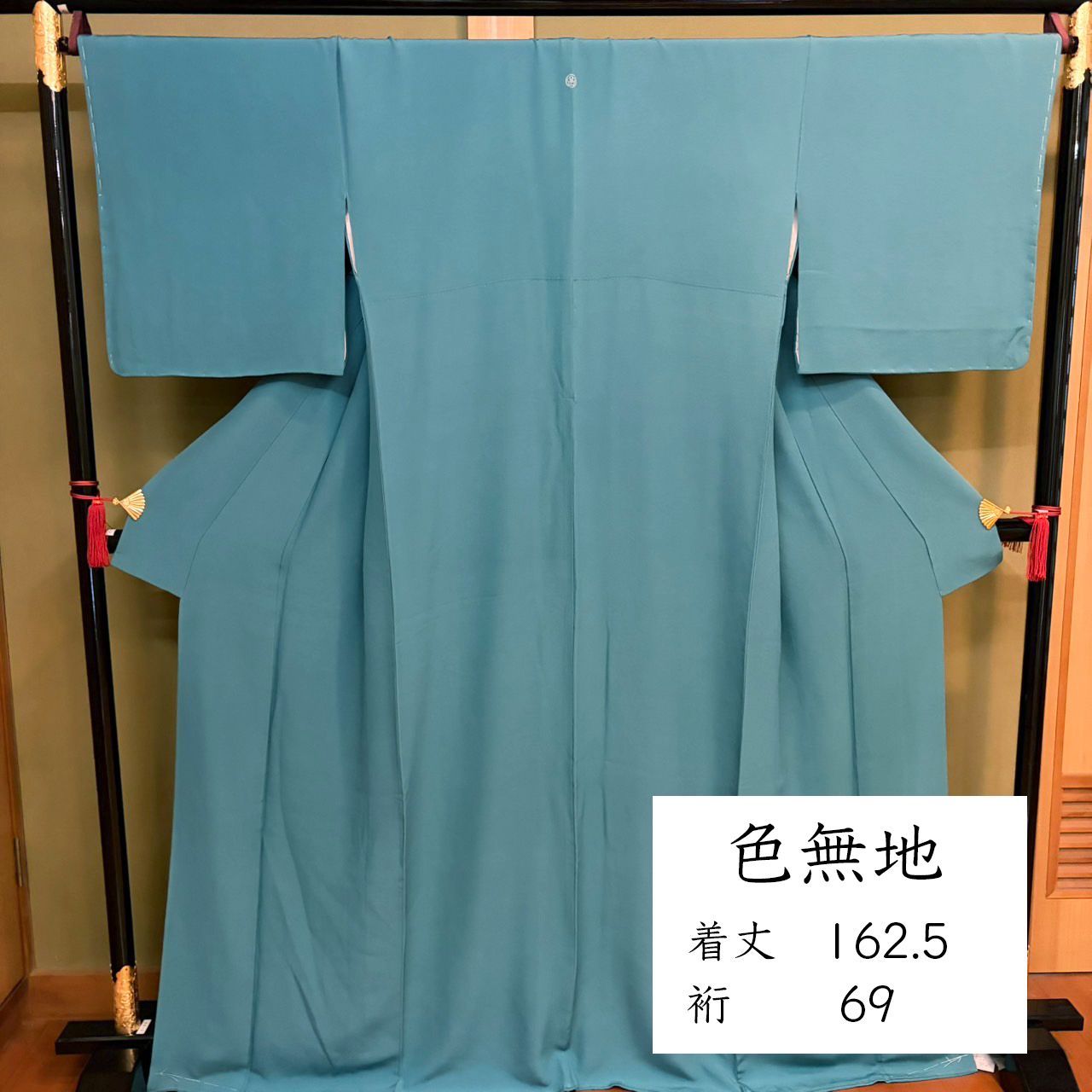 落ち着いた青緑色が綺麗な色無地です。