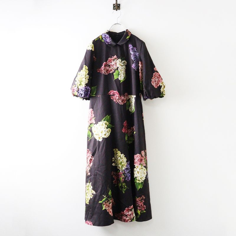 2025 SS ロイスクレヨン アンドエルシー Lois CRAYON -ellecy 紫丁香花ワンピース M ブラック┃花柄 フラワー