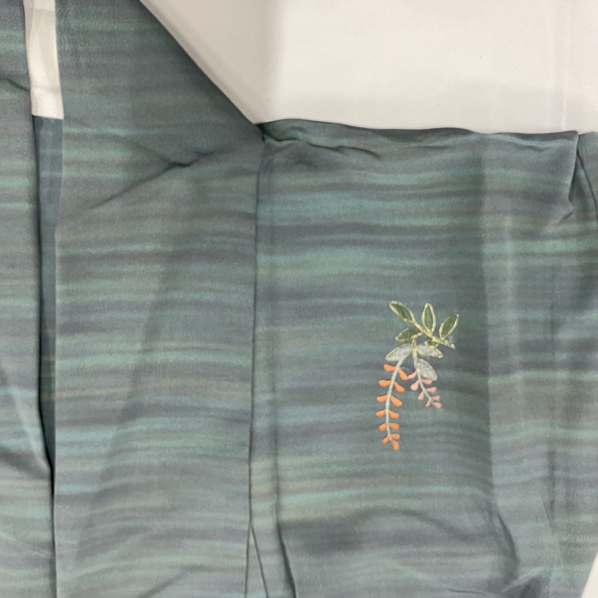 付下げ 身丈151 cm 裄丈60 S 単衣 扇面 菊 金糸 刺繍 青灰色 正絹 秀品