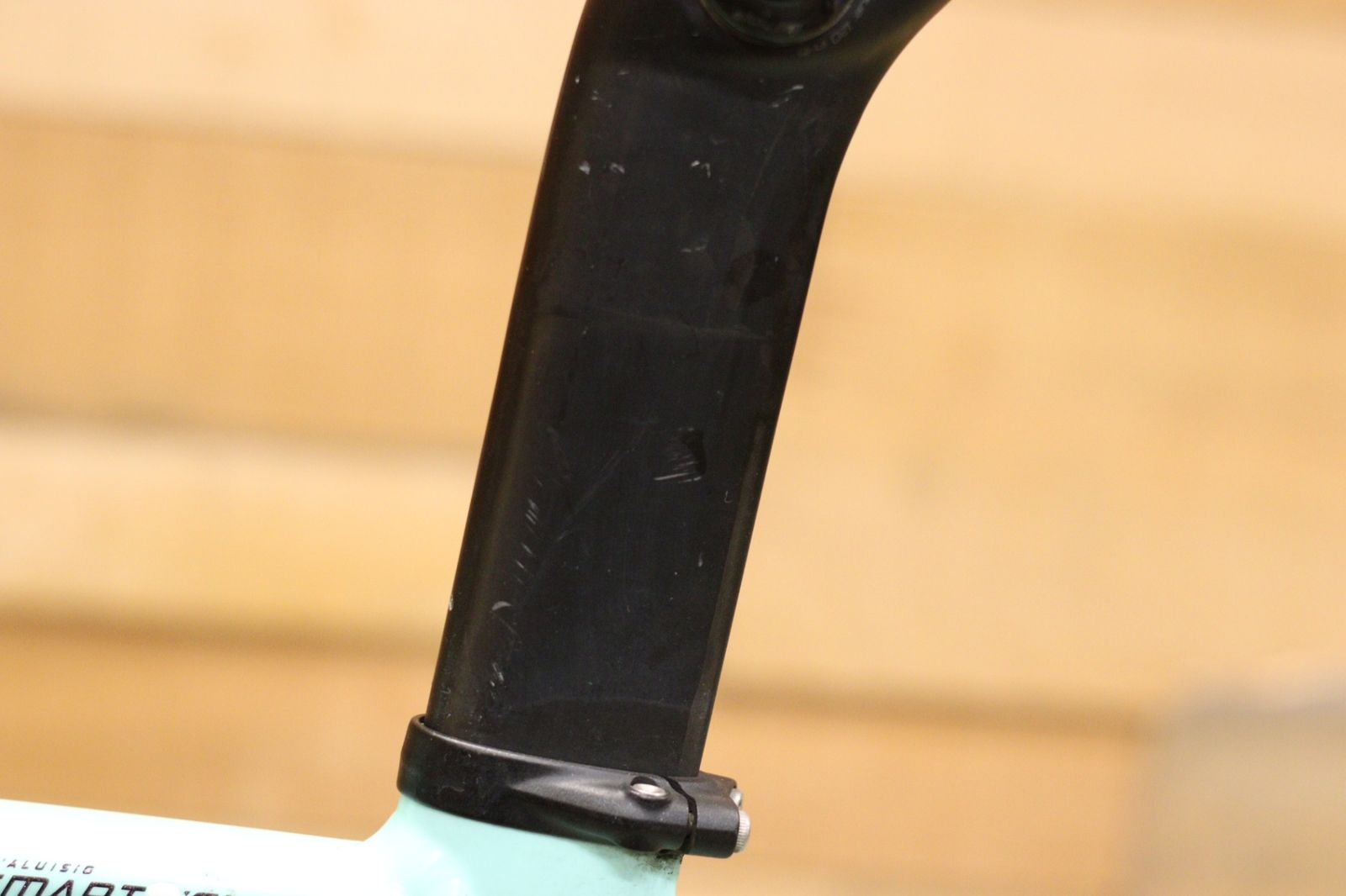 ・シートステーに凹みが見られ、フォークコラムに締め付けによる筋が見られます。