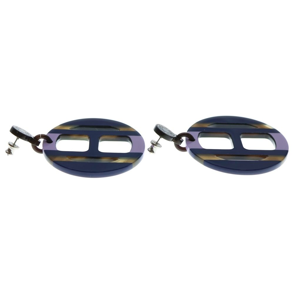HERMES エルメス Hエキップ ピアス バッファローホーン リラ メタル