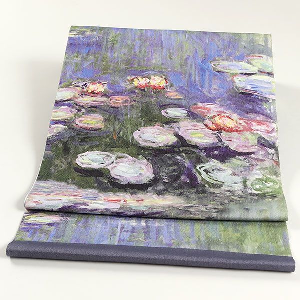 青色系の柔らかな帯地に描かれた水面に浮かぶ睡蓮の美しい姿は、モネの独特なタッチと色彩がそのまま表現されています。