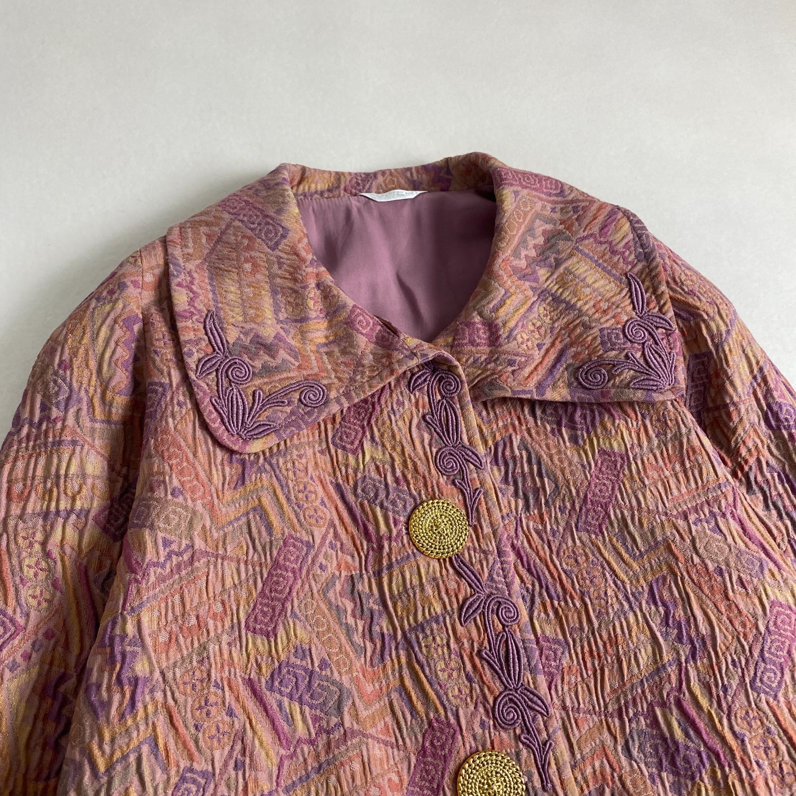 ヴィンテージ ロングコート レトロ ピンク 金ボタン ウール ジャガード