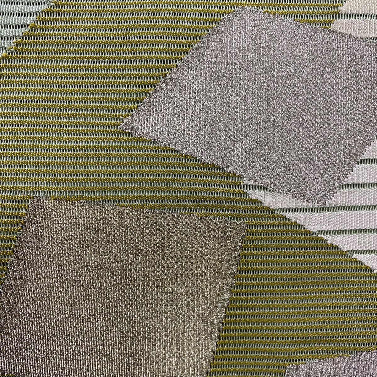 名古屋帯 秀品 夏帯 絽 八寸名古屋帯 松葉仕立て トンネル仕立て 幾何学模様 金銀糸 灰緑 正絹