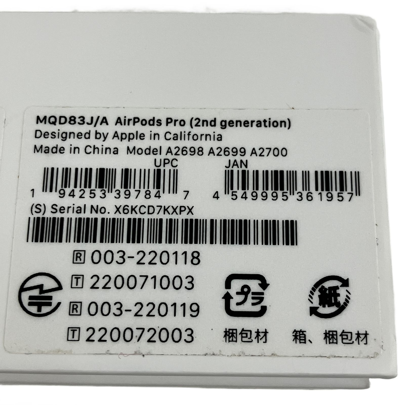 こちらは「Apple アップル MQD83J/A AirPods Pro 第2世代 ケース ワイヤレスイヤホン 新品 」でございます。