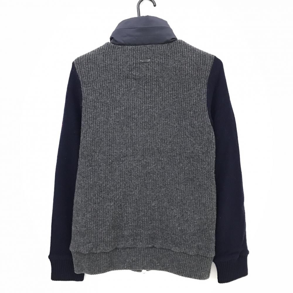 マスターバニー ニットジャケット 杢グレー×ネイビー ネック異素材 ウール混 メンズ 4 M ゴルフウェア MASTER BUNNY EDITION