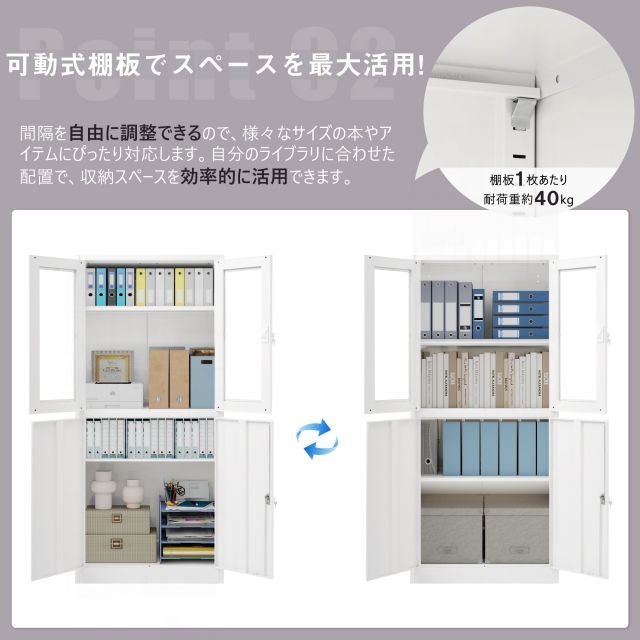 スチール書庫 両開き書庫 キャビネット本収納 幅80 高さ180 cm 書類保管庫 大容量収納 鍵付き 書庫 多用途 保管庫 書類 収納 収納棚 物品棚 オフィス 業務用 おしゃれ キャビネット スチールキャビネット 可動棚 事務所 A 4対応