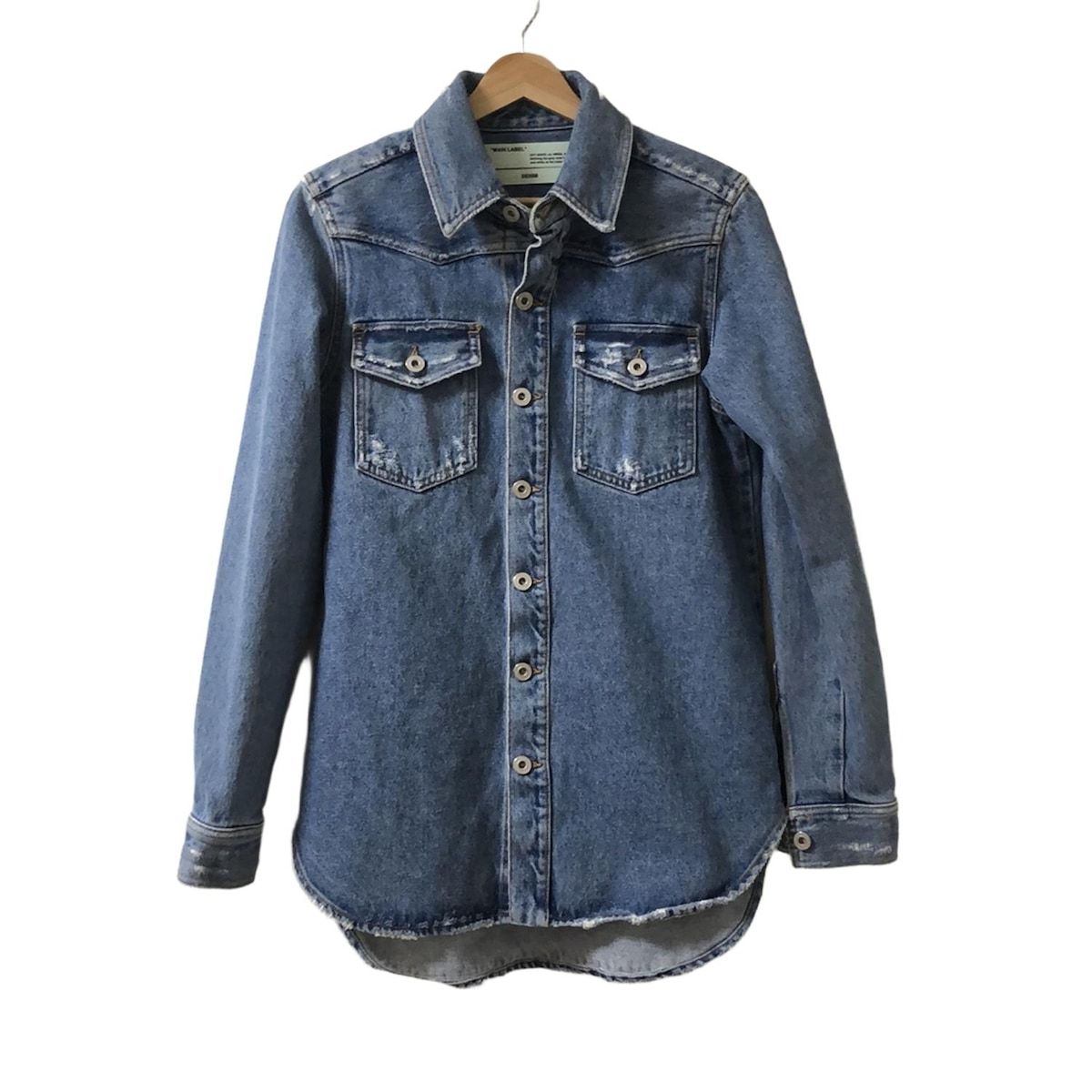 Off-White オフホワイト Gジャン サイズ38 M レディース - ブルー×アイボリー×マルチ 長袖 花柄 ダメージ加工 春 秋