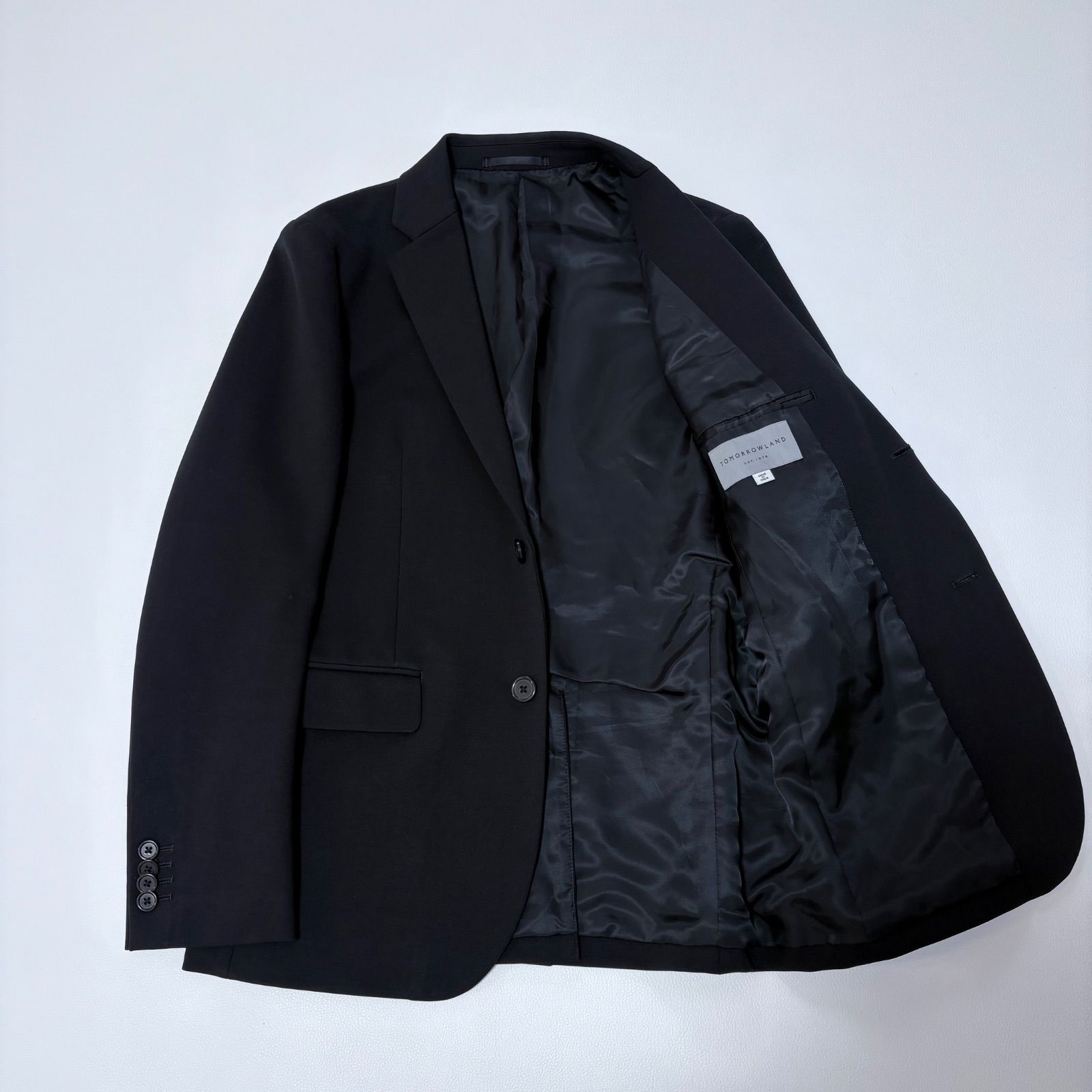 トゥモローランド 2 Bテーラードジャケット&スラックス セットアップスーツ ブラック 44 メンズ ブラックフォーマル ビジネススーツ セレモニー