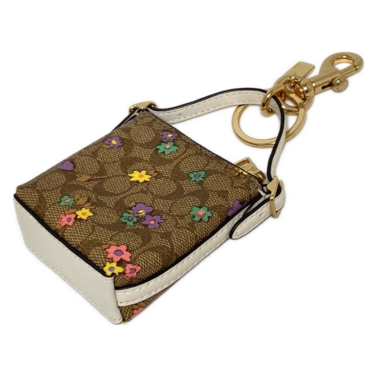 COACH コーチ キーホルダー チャーム - CA 042 カーキ×ライトピンク×マルチ ミニシグネチャー柄 花柄 バッグ モチーフ レザー