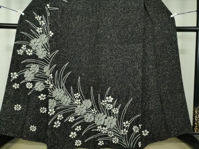 平和屋着物 訪問着 総絞り 草花文 黒地 たたき染め 正絹 ps