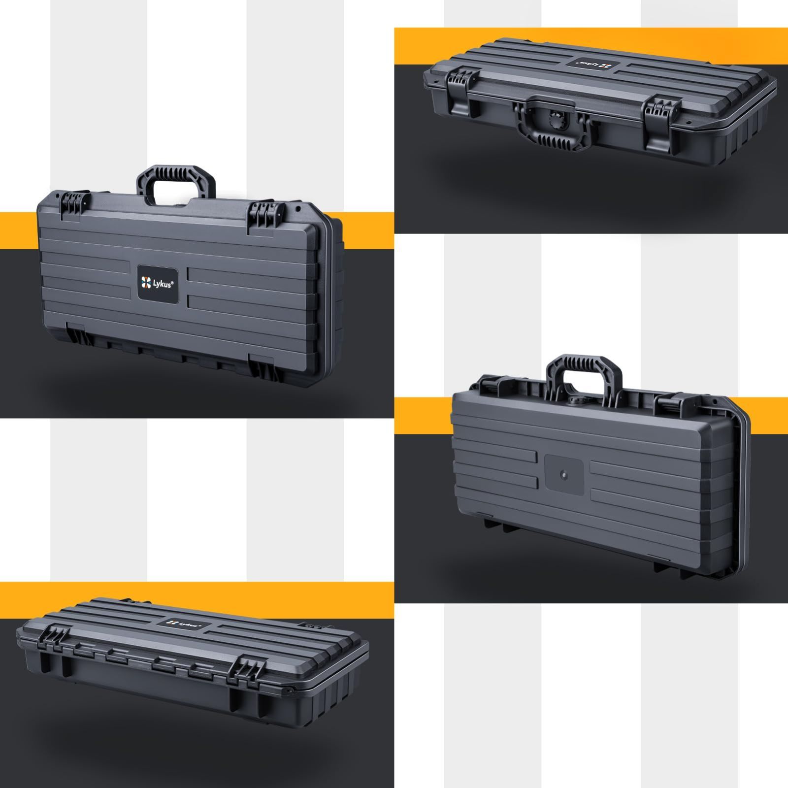 Lykus HC-5011 防水ハードケース 格子状カットスポンジが内蔵 内寸:52.6x20.7x8.8 cm ピストル、小型ドローン、ビデオカメラ、アクションカメラなどに適用