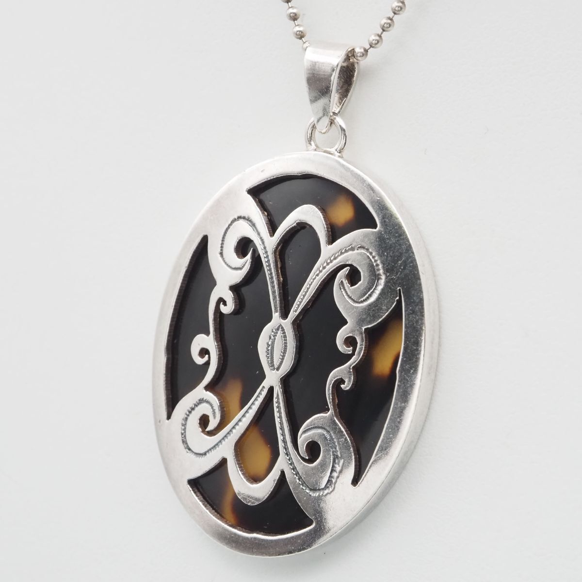 F 124 鼈甲 べっ甲 925刻印 ペンダント トップ シルバー チャーム ヘッド ヴィンテージ