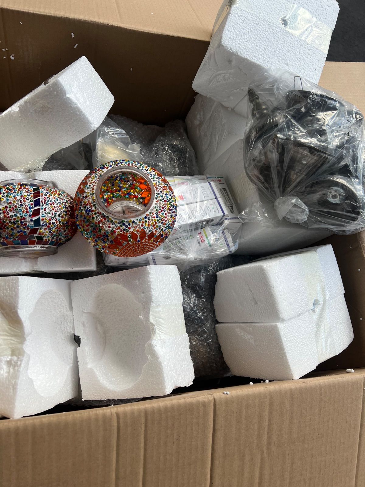 【素材】:ランプ:手作りガラスモザ イク 手動貼り付け / 本体: 鉄 表面銅メッキ