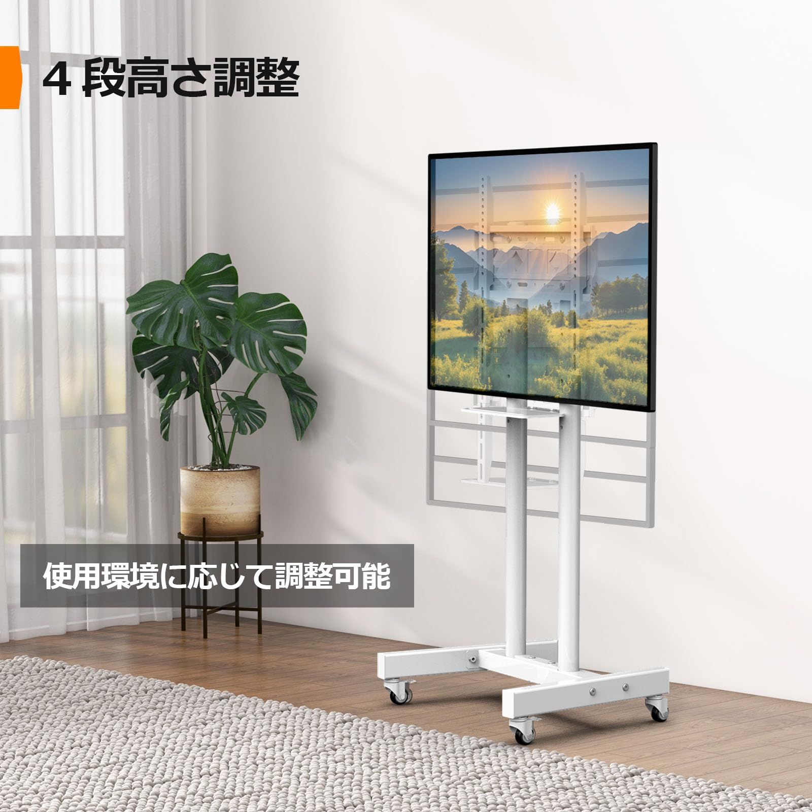 ORMGZIN テレビスタンドキャスター付き32-60インチLED、LCD、OLED 液晶用フラット&曲面対応自立式可動式テレビ台 キャスター付き床置き 壁寄せ ハイタイプ 移動式 tvスタンド ハイタイプ/ロータイプ高さ調節可能 VESA/横100~400mm/縦100~400mm 耐荷重30kg tv stand ホワイト白