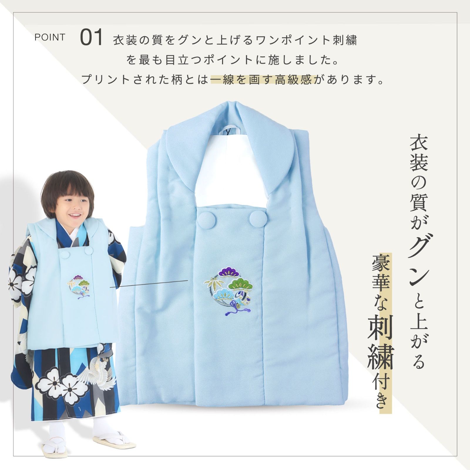 小町kids 3歳 男児 被布コートセット 七五三 着物 男の子 被布コート 選べる4柄 6点 フルセット 水色 黒 白 和柄 販売 衣装 753 初節句 端午の節句 お宮参り お正月 子供 キッズ こども 三つ身着物 古典 松竹梅