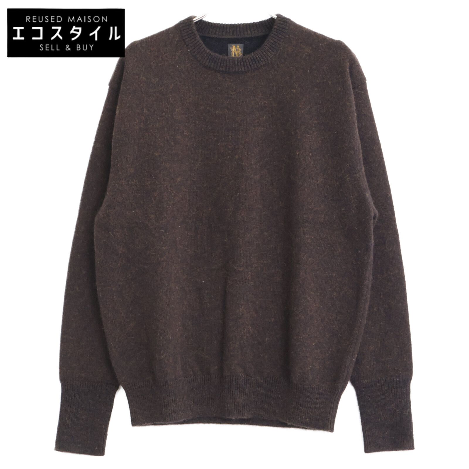 BATONER バトナー ブラウン ベビーアルパカクルミ天竺クルーネックニット 2