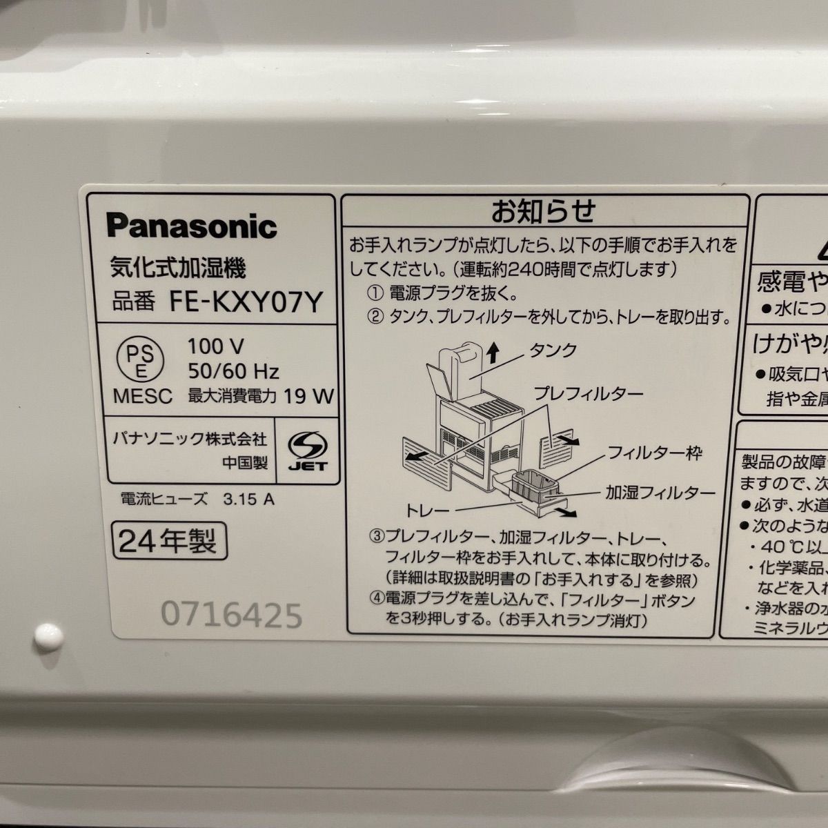 製 Panasonic 気化式加湿器 FE-KXY 07 Y ブラック