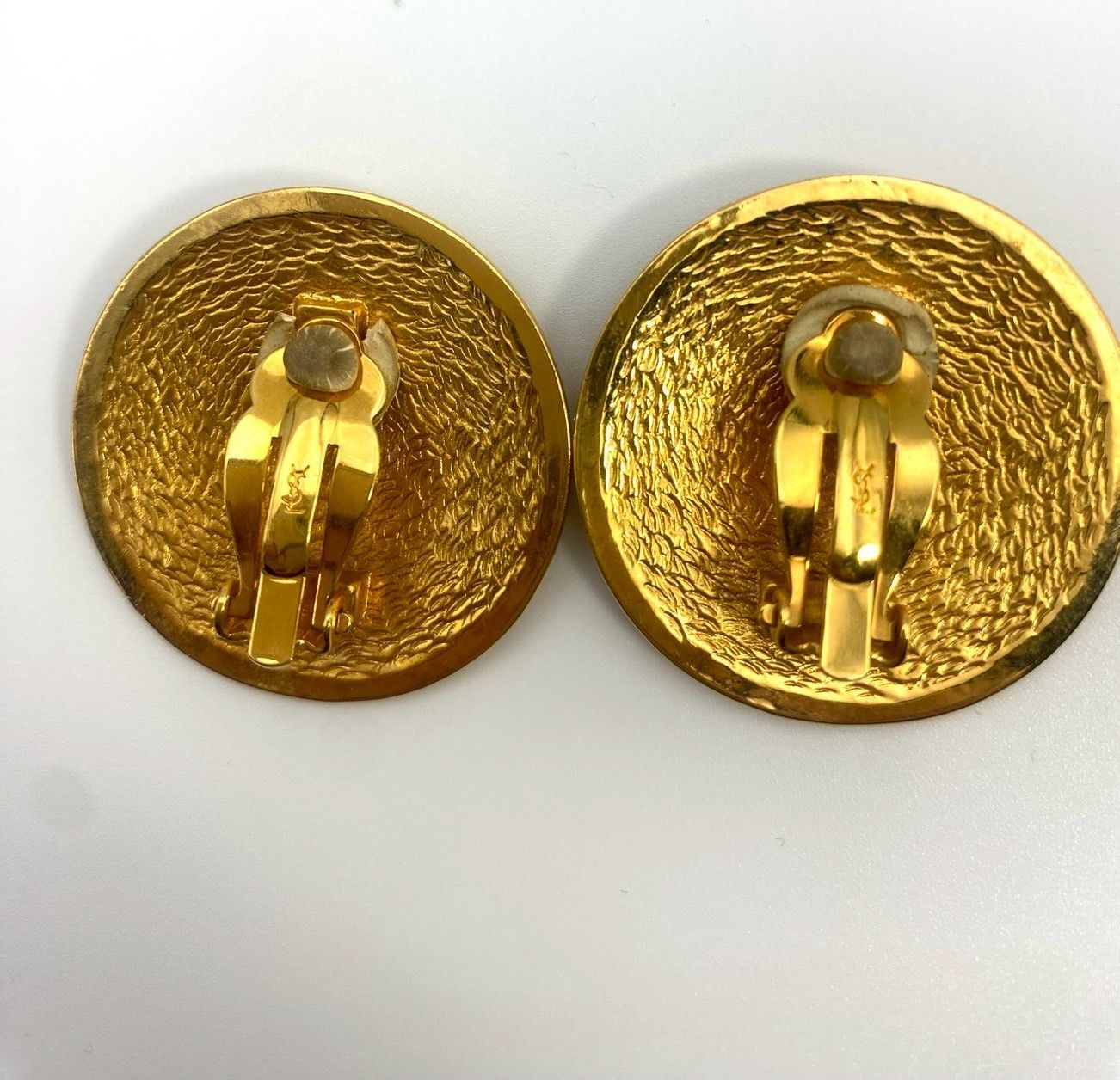 イヴサンローラン YSL ヴィンテージ ロゴ 大ぶり イヤリング GP ゴールド 丸型 約34 mm クリップ式 レディース パーティー 結婚式 刻印有