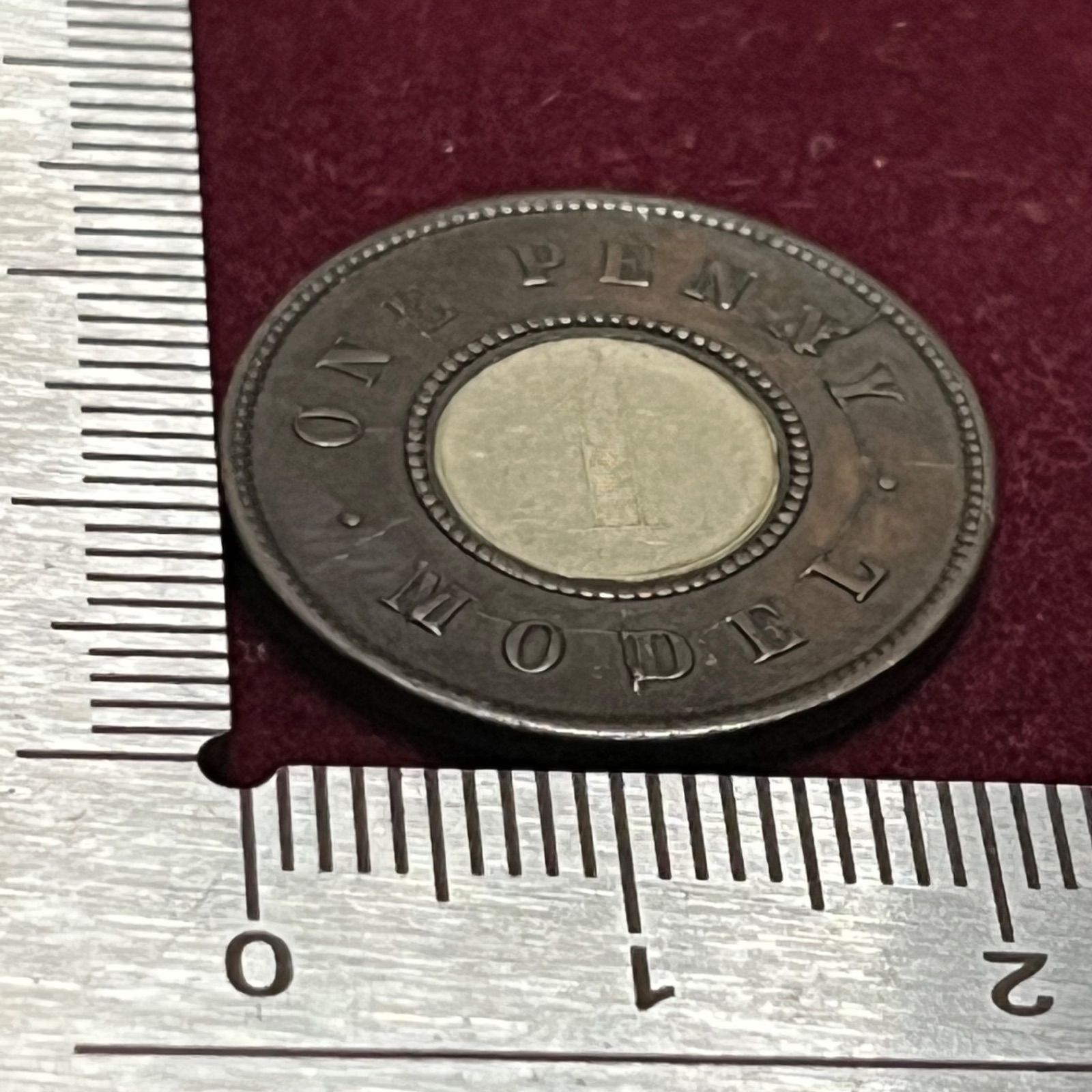 こちらは19世紀半ばのイギリスで造られた、**「ONE PENNY MODEL(ワンペニー・モデル)」と呼ばれる試作貨幣(模型コイン)です。