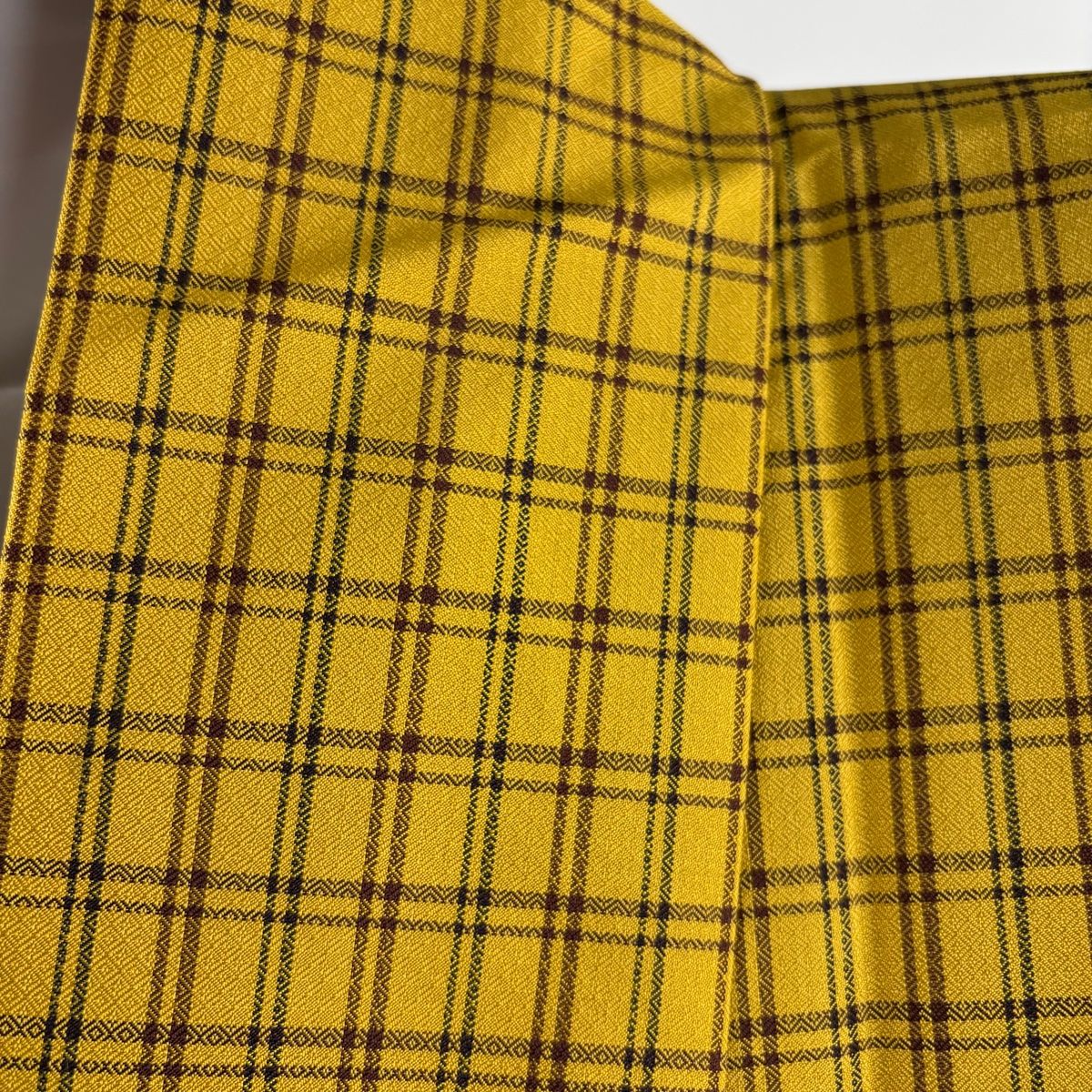 お召 身丈158.5 cm 裄丈65 M 袷 本場綾八丈 格子 山吹茶色 正絹