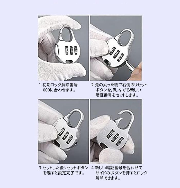 盗難防止のための3桁のダイヤル式コンビネーションロックが付属します。