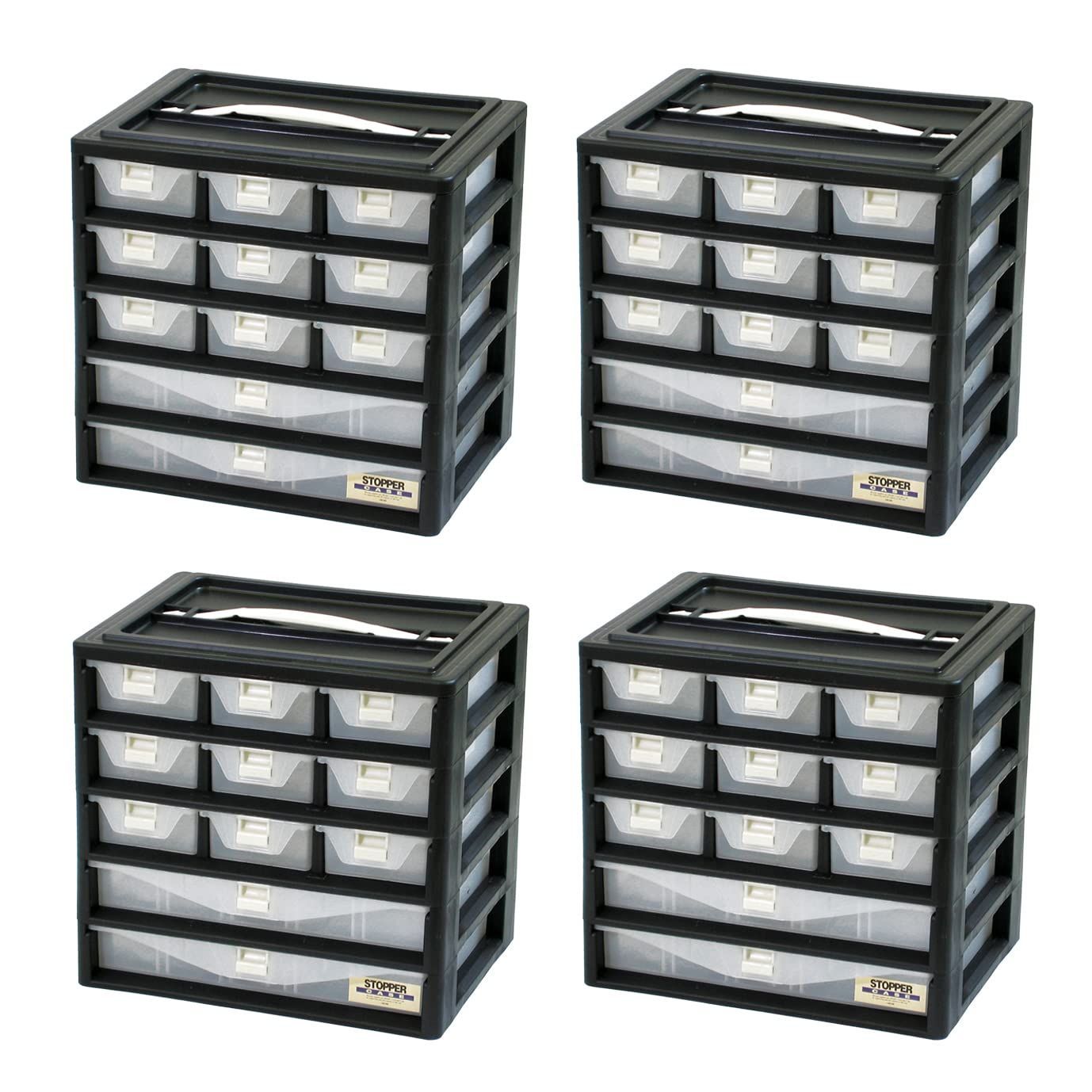 JEJアステージ 引き出し式ケース 日本製 ストッパー付き 仕切版付きストッパーケース 5A-902 [幅29.4×奥行20×高さ28cm] 小物収納 DIY 釣り具 道具箱 4個セット