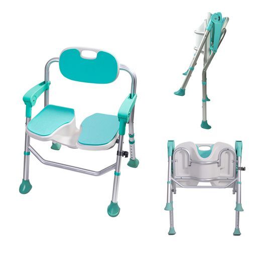 HEINALOUSお風呂椅子シャワーチェアバスチェア介護用品折りたたみ滑り止め足アルミ合金パイプ組立簡単ブルー ブルーフリーサイズ