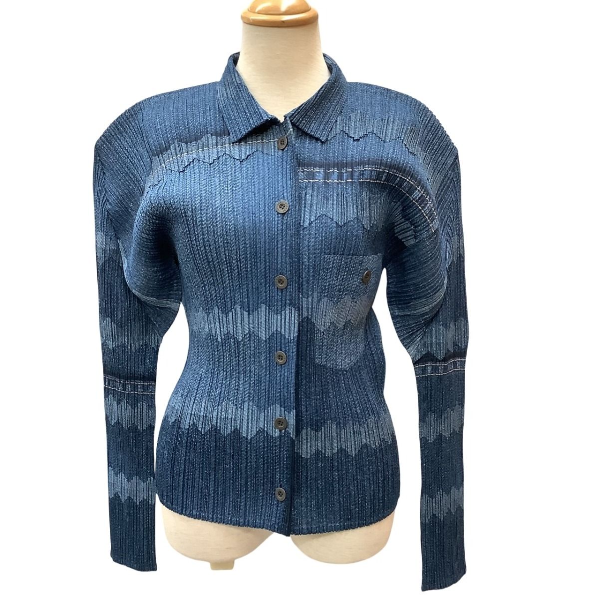 ISSEY MIYAKE イッセイミヤケ PLEATS PLEASE デニム転写 シャツ SIZE 3 PP 12-JD ブルー