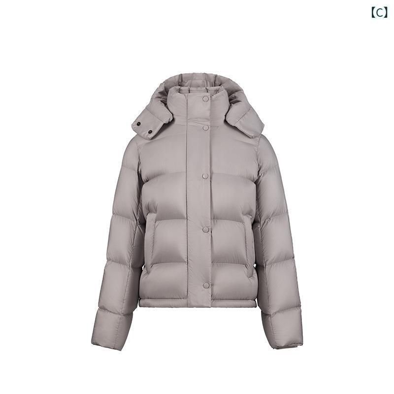 ダウンジャケット レディース 白 ポリエステル フード付き 長袖 厚手 ショート丈 アウター ジャンパー ブルゾン カジュアル スポーティー