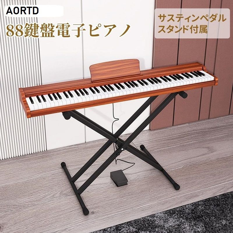 AORTD 電子ピアノ 88鍵盤 木製 スタンド付き 日本語表記 MIDI対応 380種類音色 DREAM音源 移調 練習にピッタリ 本格ペダル付き 二つヘッドホン同時使用 日本語版説明書