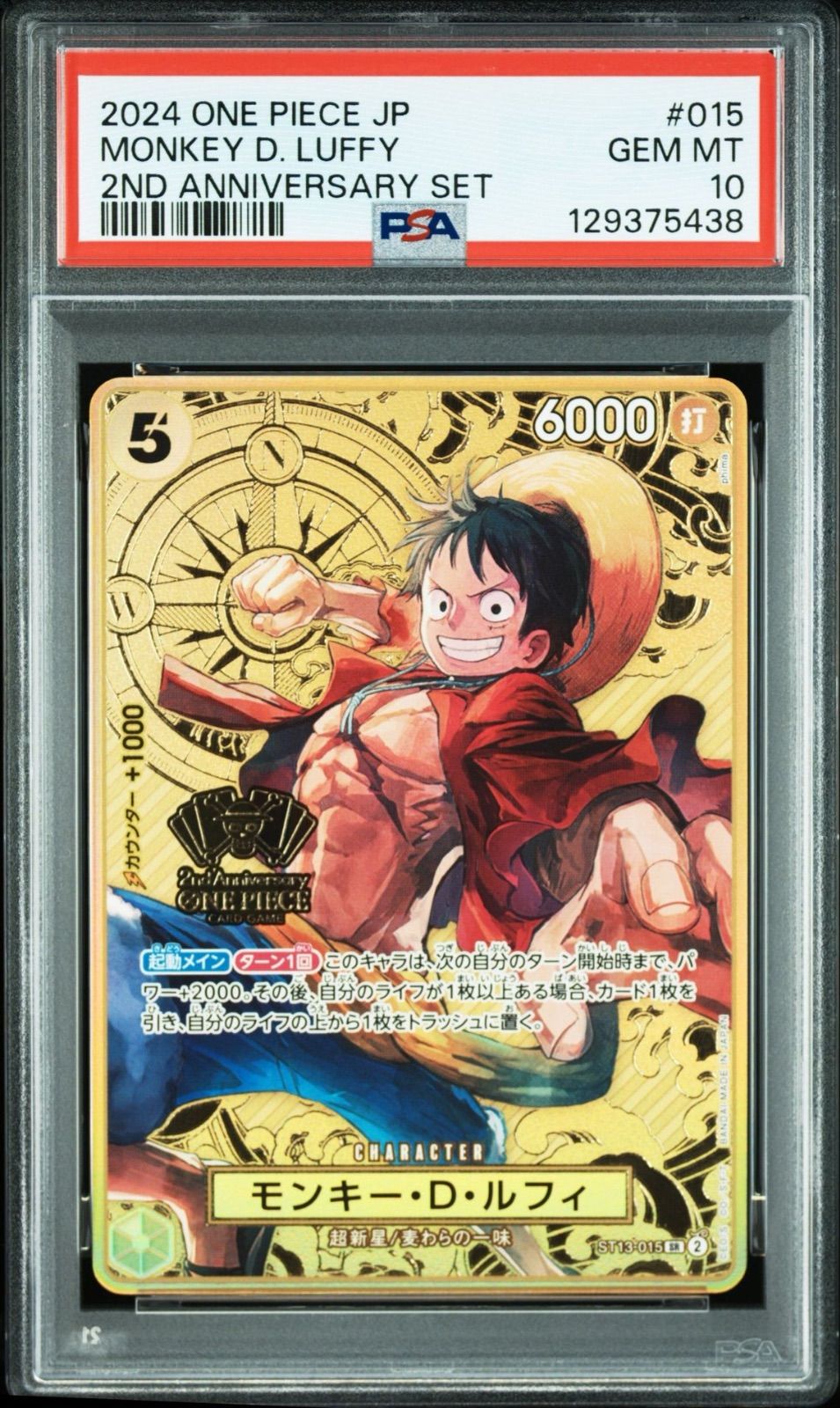 【PSA10】ワンピースカードゲーム 2周年 2024 2ND ANNIVERSARY SET モンキー・D・ルフィ ST13-015