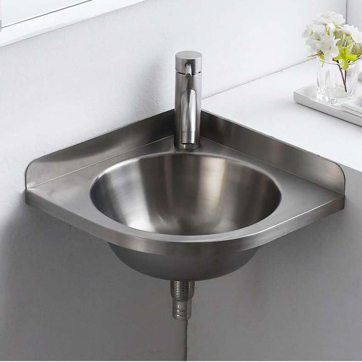 洗面ボール 壁掛け 洗面ボウル 排水金具付き 小型 ステンレス製 洗面台 耐摩耗性 耐傷性 耐久性 置き型 手洗い器 コーナー洗面台 浴室洗面台 屋外屋内ガレージ 台所 アウトドア工場 家庭用 業務用