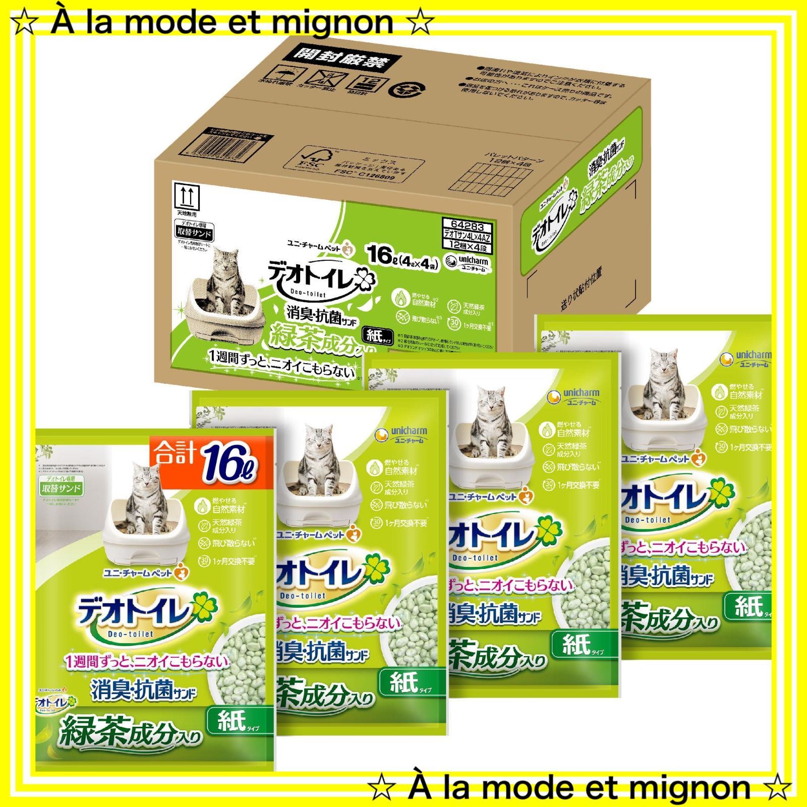 デオトイレ 飛び散らない緑茶成分入り 消臭 抗菌 サンド 16 L 4 L×4袋 猫砂 システムトイレ 猫用