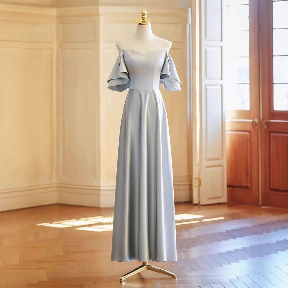 ブライズメイドドレス 花嫁付添い用 グレー 上品感 シンプル 小規模デザイン サテン素材 普段使い-10.16